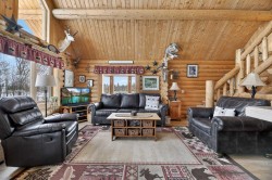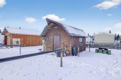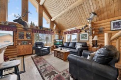 Saddle up & step into a life where wide-open skies meet the warm embrace of handcrafted logs—this 1½-story beauty is where cowboys & cowgirls truly live the dream. Beautiful & rustic ride side by side in this 1,549 sq ft above-grade log home, offering 5 bedrooms total & room for every member of your posse. The spacious primary suite rests on the main floor, with plenty of room for your full bedroom set, a generous walk-in closet, & easy access to the main floor laundry closet. After a long day on the range, retreat to the dreamy 4-piece bath featuring a classic clawfoot tub—perfect for soaking under candlelight while the prairie wind whispers outside. The open-concept main floor is built for gathering. Large windows on all sides pour in natural light, illuminating the beautifully maintained log beams overhead. The well-laid-out kitchen boasts abundant cupboard space & a grand island with seating—a place for cowpokes to pull up a chair, share a hearty meal, & swap stories of the day’s adventures. Upstairs, two more spacious bedrooms stand ready for family or guests, separated by a charming 3-piece bath complete with a deep soaker tub to wash away the dust of the trail. Down below, the fully developed basement is made for memory-making. A large family room offers space for a games area & movie nights alike. Two additional bedrooms—one currently serving as a fine home office—provide flexibility for growing families or visiting ranch hands. A full 3-piece bathroom on this level ensures comfort & convenience without having to head upstairs. When summer evenings roll in, the enormous covered front deck becomes your front-row seat to prairie sunsets blazing in the western sky. Watch your stock roam & play, or stroll over to the sheltered firepit area just steps from the home—perfect for roaring fires, laughter, & s’mores under the stars. And for your rigs and equipment? An oversized, finished, triple detached garage awaits—heated with radiant heat. Two bays are fully finished, while the single bay offers cold storage for all your gear. And to finish it all off. A well set up Tack shed for all your gear. Set up, move-in ready, & just minutes to town for all amenities, this must-see property is the kind folks write songs about. You won’t believe your eyes. “Home Is Where Your Story Begins!”