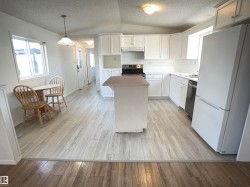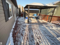 Get into home ownership in this renovated 3 bedroom, 2 bathroom home in one of the best locations BACKING A POND in Parkland Village! This 1100 sq ft bungalow will feel like home as you walk in the front door. Large entry for people to remove coats and boots! Open concept floorplan with large living room complete with bay window. Move into the kitchen with the move-able island & decent storage space! The dining area is easy to expand to host family & friends. Master suite features a large window, big wall of closets and a 4pc ensuite. 2 more bedrooms are a great size for kids or guests or to use as a home office. Great outdoor space with large deck complete with gazebo for watching nature across the pond. Even a very private garden spot too! Parking pad for 2-3 vehicles! Central A/C (2019) Roof (2019) Paint (2025) Flooring (2025) Appliances (2025) Toilets & Faucets (2025) and more! Easy access to Yellowhead to lead you anywhere you want to go!