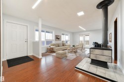 The kind of VIEW people wait years for — miles of open landscape and sunsets you’ll never forget! Sitting on 9.79 acres, this WALK-OUT bungalow delivers privacy, space, and a solid foundation for your next chapter. The main level includes a perimeter kitchen with built-in cabinetry, a large living room anchored by a cozy wood stove, and 4 bedrooms and 3 total bathrooms (with room to finish a 4th). A full exterior WRAP-AROUND deck — accessible from all sides — pulls the outdoors into daily living, while the unfinished basement adds flexibility for future plans. Outside, a single-detached garage and a charming 20'x30' traditional barn with its classic faded-blue finish set the scene; it feels like something straight out of a movie. With an ICF foundation and metal roof already in place, if you’ve been waiting for a property with view that’s truly remarkable — this is it!