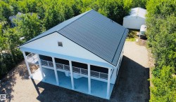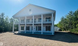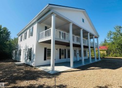 Elegance with Endless Potential at Lac Sante! Discover timeless charm and modern opportunity in this grand 6-bedroom, 2-storey retreat located in the desirable Still Water Resort at Lac Sante. Set on a 0.48-acre lot, this expansive home offers over 4,700 sq ft of well-planned living space ideal for year-round enjoyment or an Airbnb.The main level features a large kitchen with black stainless Samsung appliances, a luxurious primary suite complete with a 5-piece ensuite, walk-in closet, and convenient access to the laundry room. Enjoy cozy in-floor heating and soundproof walls for enhanced privacy. Upstairs, you’ll find five spacious bedrooms, including two with 4-piece ensuites, plus an additional half bath perfect for guests or large families. 3rd level is a blank canvas to let your imagination run wild. Outside there's a single attached garage and a large quonset for all your parking and storage needs. Finish to your taste and make this lakeside escape your dream home or next investment success!