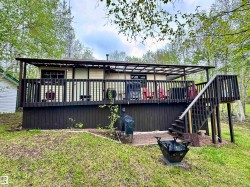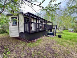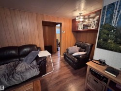 Set on a half-acre lot in the County of Two Hills, this move-in ready home offers both comfort and convenience. A well-maintained, insulated/heated 2 car garage with remote access adds practicality! Inside, the main floor showcases beautiful views of the area, featuring a bright kitchen and dining area, a cozy living room, a 3pc bathroom, and two spacious bedrooms. A staircase leads to a versatile flex space, perfect for guests or hobbies. The backyard is a private retreat with a deck ideal for morning coffee, patio seating nestled closer to nature for evening relaxation, a treed driveway, firepits, and sheds for storage or outdoor equipment. Recent upgrades include new shingles, a high-efficiency furnace, hot water tank, appliances, a new deck, and heat tracing on the roof overhang. This property blends modern updates with serene surroundings, making it the perfect all-season getaway. Furniture and outdoor items negotiable.