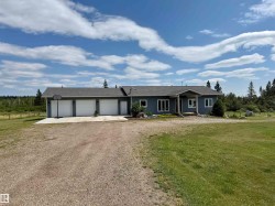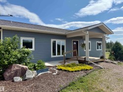 Modern Acreage Living Just Minutes from Two Hills. Welcome to your ideal country escape, located just 7 minutes East of Two Hills near the quiet community of Musidora. Built in 2013, this spacious 5-bedroom home offers comfort, functionality, and room for the whole family—both upstairs and down. Designed with family living in mind, the home features expansive living areas on both levels, along with a fully finished basement complete with a second kitchen and cozy in-floor heating—perfect for multi-generational living or hosting guests. The insulated concrete block basement adds energy efficiency and savings. Outdoors, you'll find a triple garage offering ample space for vehicles and storage. A drilled well services the home, while a separate bored well is available for watering needs—ideal for gardens. If you're looking for modern acreage living in the County of Two Hills with privacy, space, and modern upgrades, this property checks all the boxes.