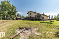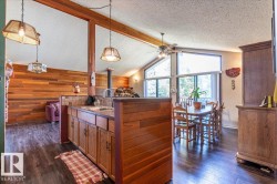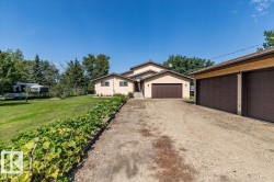 This Magnificent Property with Lakefront Access and Views holds a 2250 sq/ft Home with a Double Attached Garage, Quadruple Detached Garage, and More! Inside the home the Main Level is made up of Two Bedrooms, Living room with a wood fire place on a stone wall, Kitchen that is open to the Dining room with a vaulted ceiling, and Family room with another fireplace. A Walk-In Pantry, Laundry/Utility Room, and a 4 Piece Bathroom Conclude the Main floor. The Upper Level has the Primary Bedroom that has its own 4 Piece Ensuite Bathroom, Walk-In Closet, and an Office. This Home is Wheelchair accessible from the Attached Garage with a lift and from the large back deck that over looks the lake through the patio doors into the Living room and Family room. The Detached Garage measures 36'x28' has a Concrete floor, Heat, Power, and Two Overhead Doors. This Property Welcomes you to enjoy the lake year round with extra storage for toys of every season!