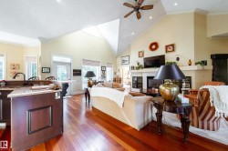 Luxurious Lakeside Living at Silver Beach Highly motivated sellers. Quick possession. This custom-built bungalow offers 2,785 sq.ft. of refined living space,including a finished loft, 3 bedrooms + office, 2.5 baths, and a heated double garage, all on a beautifully landscaped 1,638 sq.m. lot. Enjoy cherry hardwoodfloors, a gourmet kitchen, automated blinds, and a spacious living room with gas fireplace. The main-floor primary suite features copper sinks, customcabinetry, and French doors to the patio. Relax in the sunny backyard with hot tub, waterfalls, and a large deck, perfect for summer evenings. This isn’t justa house. It’s your next chapter. Come explore and you might just fall in love.