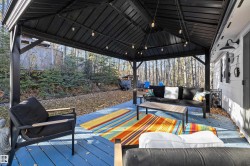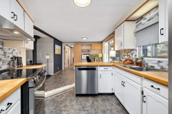 This move-in ready 3-bedroom, 2-bathroom home offers the perfect blend of comfort, privacy, and modern upgrades — all within walking distance to the lake and the amenities of The Village. Step inside to discover a bright, open layout featuring new flooring, including plush carpet and durable vinyl. The upgraded kitchen and bathrooms shine with modern finishes and convenience, complemented by three new appliances (2025). Stay cozy and energy-efficient all year round with a new high-efficiency wood stove (2025) and on-demand hot water, along with updated plumbing for peace of mind. Enjoy outdoor living in the 10 x 14 gazebo, ideal for relaxing or entertaining, all while taking in the private ravine setting—a nature lover's dream. Dock & hoist negotiable. Additional highlights include a new metal roof (2025) for long-term durability and curb appeal. Don't miss this opportunity to own a stylish, upgraded home in a peaceful location just steps the lake and from everything The Village has to offer!