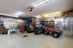 Custom built 4114 sq ft. executive 2 story home in Gloryland that impresses from the moment you set eyes on it. Beautiful stucco finish, big 1/2 acre lot, and 2 big triple car garages and a plumbed greenhouse. Inside has 4 bedrooms upstairs, with the primary the perfect size, 5 pc ensuite, and a walk in closet that's almost another room itself. With an open concept flex area outside the bedrooms. There is also a theatre room with built in sound and upper floor laundry. The kitchen is amazing, loaded with granite and only the best of appliances including a 6 burner gas range, beautiful tile, thick stylish granite and beautiful maple cabinetry. Big living room off the kitchen and dining nook with doors into the fully fenced back yard featuring a massive gazebo with an amazing oversized brick fireplace. Formal dining room, and an additional flex room. The triple attached garage looks like the set of a Saturday morning car show with custom checker plate cabinets and a Hotsy washer included. Outside is another triple garage with metal clad interior finishing and an attached fully plumbed and heated greenhouse. This might not be your first house, but it certainly has what it takes to be your last.