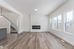 The Charleston is a stunning 2,289 sq. ft. residence situated on a prime corner lot, offering a seamless blend of style and utility. This home features 9’ ceilings on both levels, a double car garage, and a separate side entrance. The main floor is defined by Luxury Vinyl Plank flooring and a chef-inspired kitchen that boasts a massive island, Quartz surfaces, and premium cabinetry with soft-close hardware. A standout walk-in butler’s pantry with a prep sink serves as the perfect coffee station or staging area. The sun-soaked living room features a fireplace and expansive windows with panoramic backyard views. Upstairs, the primary retreat offers a 5-piece ensuite with a soaking tub and a walk-in closet that connects directly to the laundry room for ultimate convenience. A central bonus room and two additional bedrooms with walk-in closets provide ample space for the whole family. Finished with matte black fixtures, this home is the pinnacle of modern, effortless living.
