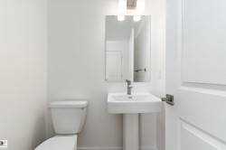 Introducing the Sansa II, a stylish and functional home designed for modern living. The bright open-concept main floor features a welcoming great room, dining area, and a rear L-shaped kitchen with quartz countertops, undermount sink, soft-close Thermofoil cabinets, and a spacious pantry. A conveniently placed powder room leads to a large backyard and rear parking pad, with the option to add a detached two-car garage. Upstairs offers an open loft, dedicated laundry, and a primary suite with walk-in closet and 3-piece ensuite. Two additional bedrooms and a main 3-piece bath complete the upper level. Upgraded brushed nickel fixtures are included, along with Sterling’s enhanced Signature Specifications.