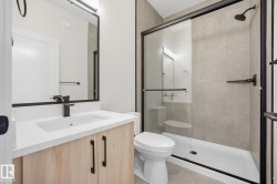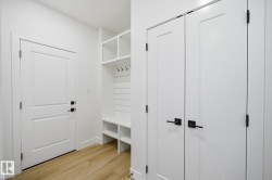 Welcome to your dream home in Harvest Ridge, where luxury meets nature! This stunning walkout duplex offers serene views and endless natural light. The main floor features a versatile den with a full bath, perfect for guests or a home office. Step into the impressive open-to-above great room, highlighted by a custom MDF feature wall, tiled mantel, and cozy electric fireplace that sets the tone for modern elegance. Upstairs, unwind in the spacious bonus room, or retreat to your primary suite complete with a spa-inspired ensuite and walk-in closet. With three bedrooms, high-end finishes, and thoughtful details like soft-close cabinetry, quartz countertops, 9 ft ceilings on the main and basement floors, garage drain, BBQ gasline and MDF shelving, every inch of this home reflects quality. The walkout basement awaits your personal touch, offering endless possibilities for extra living space. This home is truly move-in ready.
