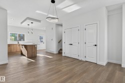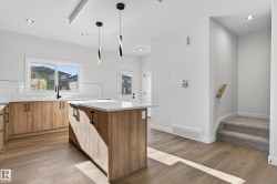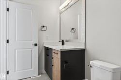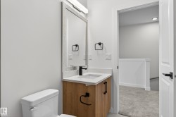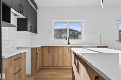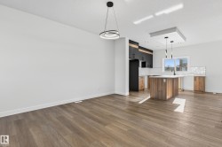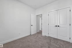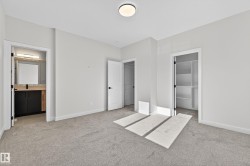 BRAND NEW Townhome with NO CONDO FEES. Open concept floorplan features living room with electric fireplace complete with an accent wall. Upgraded ceiling height 2-toned kitchen cabinet's with quartz counter tops and soft close drawers. A nook overlooking the backyard and a 2-piece powder room complete the main floor. Upstairs, the master bedroom features a 3-piece ensuite and Walk-In Closet. 2 additional good sized bedrooms, a bathroom and laundry room complete this level. SEPERATE ENTRANCE to the basement plus a parking pad. Modern Details include, MDF shelving throughout, luxury vinyl plank, upgraded backsplash and premium lighting package. This community is conveniently located just 11 minutes away from the City of Edmonton and has direct access to Highway 16A. Close to all amenities.