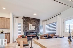 Introducing The Sapphire, a beautifully staged 1,619 sq. ft. home on a premium corner lot in desirable Easton. Enjoy 9’ ceilings, luxury vinyl plank flooring, and an open, light-filled layout. The upscale kitchen showcases granite countertops, a large island, soft-close cabinetry, custom hood fan, full-height tile backsplash, and built-in microwave. A striking floor-to-ceiling brick fireplace anchors the living space, while a main-floor bedroom and chic 3-piece bath offer flexibility. Upstairs features a serene primary retreat with walk-in closet and tiled glass shower ensuite, plus two additional bedrooms, a bonus room, full bath, and laundry. Complete with A/C, black fixtures, landscaped yard with deck, blinds, appliances, and a 9’ basement with side entrance and rough-ins.