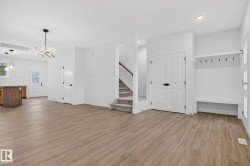 BRAND NEW Townhome with NO CONDO FEES. Open concept floor plan features a living room with electric fireplace complete with an accent wall. Upgraded ceiling height 2-toned kitchen cabinets with quartz countertops and soft-close drawers. A nook overlooking the backyard and a 2-piece powder room complete the main floor. Upstairs, the master bedroom features a 4-piece ensuite and Walk-In Closet. 2 additional good sized bedrooms, a bathroom and laundry room complete this level. SEPARATE SIDE ENTRANCE to the basement plus a DOUBLE DETACHED GARAGE. Modern Details include, MDF shelving throughout, luxury vinyl plank, upgraded backsplash and premium lighting package. This community is conveniently located just 10 minutes away from the City of Edmonton and has direct access to Highway 16A. Close to all amenities.