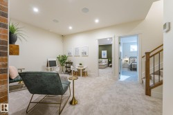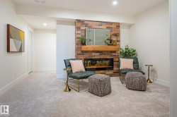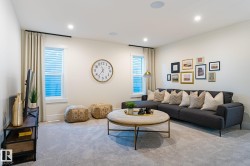 Welcome to this beautifully designed Coventry Homes showhome, where high-end finishes and thoughtful details shine throughout. The open-concept main floor features a chef-inspired kitchen with quartz countertops, full-height cabinetry, tile backsplash, stainless steel appliances, gas range, butcher block island, and a walk-through pantry. The spacious living room offers a cozy brick-facing gas fireplace, while the dining area is perfect for entertaining. A mudroom and half bath complete the main level. Upstairs, the elegant owner’s suite boasts a 5-piece ensuite with dual sinks, stand-up shower, soaker tub, and walk-in closet. You’ll also find two additional bedrooms, a full bath, bonus room, and laundry. The fully finished basement adds even more living space with a fourth bedroom, full bath, family room, and a theatre room with a dry bar—perfect for movie nights. A double attached garage completes this impressive home.