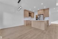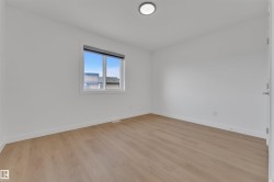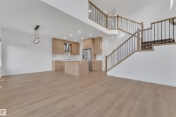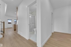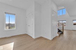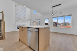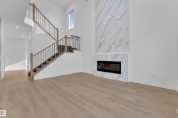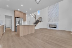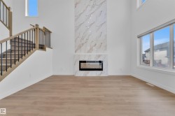 Corner Lot ||26 pocket || Backing to green || Detached front double car garage home on a regular lot in Fenwyck. This open-concept layout features a main floor bedroom with closet and full bath, a modern kitchen with quartz countertops and center island, plus a separate spice kitchen. The living room boasts open-to-below ceiling, an electric fireplace, and tile feature wall. Dining nook opens to the backyard. Vinyl flooring throughout main and upper floors, with elegant railing. Upstairs includes a bonus room, laundry, and three bedrooms, primary with ensuite, walk-in closet, and indent ceiling. Basement has side entrance and two windows. Fenwyck is one of the most sought-after communities, surrounded by 80 acres of preserved forest, offering peaceful natural living near city convenience. Just 11 minutes from Edmonton with direct access to Hwy 16A via Pioneer Road—ideal for first-time buyers or families seeking their forever home.