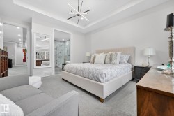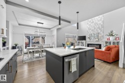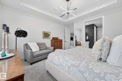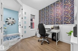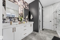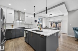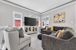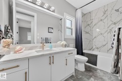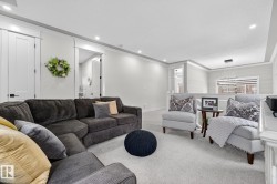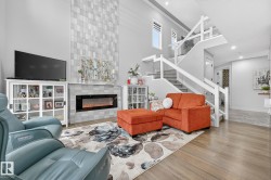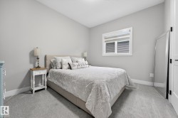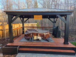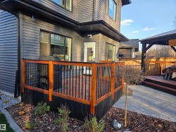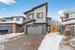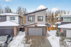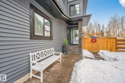 Welcome to Spruce Grove’s vibrant Fenwyck subdivision!! This stunning 4 bedroom 2411 sq ft home is a must see!! The second you enter, you are greeted by tasteful decor and visible upgrades throughout . The main floor consists of a den/office, 3 pce bath, living and dining room and a walkthrough pantry linking the garage to your show stopper kitchen! The open floor concept is accentuated with 20+ft ceilings, hardwood floors, electric fireplace, and quartz countertops throughout the entire home. Upstairs features FOUR bedrooms, a BONUS room, 5 pce ensuite bath and a spacious laundry room. The side entrance to the unfinished basement provides suite potential for passive income. The property has been professionally landscaped which includes a covered 12x16 gazebo on a second unattached deck, a professionally built 8x16 shed, 3 zone irrigation, NG line to BBQ, A/C installed 2025, and a stone patio. This property backs on to a private FOREST/Greenspace!