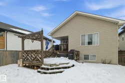 Move-in ready, fully finished 5-bedroom bi-level home. A spacious foyer welcomes you with an extra-wide staircase leading to the lower level. The main floor features an open-concept kitchen, dining, and living area, along with two bedrooms and a full bathroom. The private primary suite, located over the garage, offers a walk-in closet and a full ensuite. The lower level boasts a large open family room with a corner gas fireplace, two additional bedrooms, and another full bathroom & added storage under the stairs. The utility/mechanical room includes the laundry area. The heated double attached garage is equipped with 240V wiring. Outside, the beautifully landscaped yard is fully fenced and includes a two-tiered deck, rock patio with firepit area, garden and raised garden beds, plus added under-deck storage—perfect for outdoor living and entertaining.