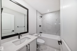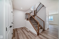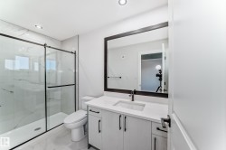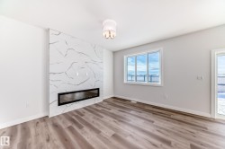 IDEAL DUPLEX FOR STARTER/ INVESTMENT/ DOWNSIZING OPPORTUNITY. LOCATED IN THE JESPERDALE COMMUNITY sits this 3 bedroom, 2.5 bath, plus loft. Main floor offers, 9 fT ceilings, kitchen with 2 toned modern cabinetry, quartz countertops, stainless steel appliances, island, pantry & spacious dinning nook. Perfect for cooking meals and entertaining! Family room has comfortable setting with fireplace and huge windows. Half bath finishes main level. Walk up the stairs to master bedroom with 3 piece ensuite/ spacious walk in closet, two bedrooms, 4 piece bath, loft & laundry room. Unfinished basement with seperate entrance, 9' ceiling and roughed in bathroom is waiting for creative ideas. House features WIRELESS SPEAKERS/ GAS HOOK UP FOR BBQ / CLOSET ORGANIZERS/ TRIPLE PANE WINDOWS / NO CONDO FEES. Spruce Grove is dynamic city with, rec centres, schools, Golf, theatres, shopping, public transit, easy access to Edmonton, & more than 40 km of trails. Your dream home home awaits.