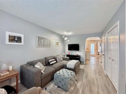 Beautifully renovated 2 bedroom townhouse featuring dual primary suites, each with its own private ensuite - perfect for roommates, guests or a home office setup. This move-in ready unit boasts updated laminate flooring, modern countertops, and a new fridge, giving the home a fresh, contemporary feel. The partially finished basement adds valuable extra living space and includes a convenient 2pc. bathroom, ideal for a rec room, gym or work from home area. Located close to shopping, transit, schools and other everyday amenities. This home offers both comfort and convenience. An excellent opportunity for first-time buyers or investors alike.