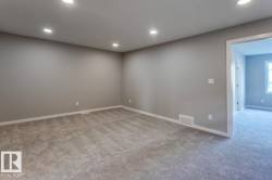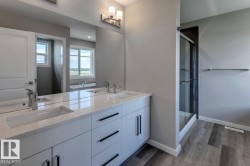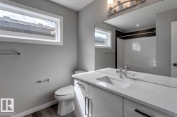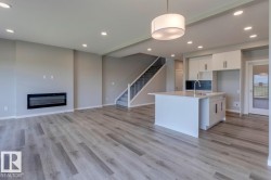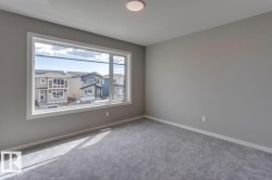 This stunning WALK-OUT home is located in an amenity-rich community, just steps away from Spruce Grove's new civic center and with easy access to Highway 16. The open-concept main floor seamlessly connects the kitchen, dining area and great room featuring an electric fireplace. The spacious kitchen boasts quartz countertops and a large island, while the mudroom includes a convenient walk-through pantry. Upstairs, you will find three bedrooms, a central bonus room and laundry. The primary retreat offers pond views, a walk-in closet, and luxurious 5pc ensuite with a standalone soaker tub and a tiled 5' shower. The basement is designed with 9' ceiling, extra windows and 3 pc rough-in for potential future development. Enjoy the convenience of a Smart Home System, including thermostat control, video doorbell, and front door lock. The home also features 10x10 deck with peaceful pond views. Plus, there are NO neighbors behind you!