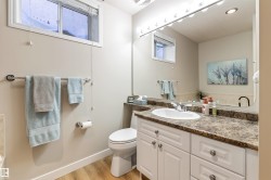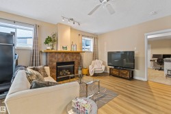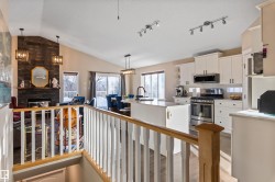 On a quiet crescent in Northridge, discover this charming WALKOUT BUNGALOW backing onto Newbury PARK. This home has great curb appeal w/ a covered front deck. The entrance welcomes guests into an OPEN DESIGN featuring a white kitchen w/ QUARTZ counters, eating bar island, corner pantry, tile backsplash, pot/pan drawers, crown moulding trim on the upper cabinets & s/s appliances. The living room has soaring VAULTED CEILINGS, a gas f/p w/ stone front, a wood mantle & a stunning library wall. The dining nook has access out to the maintenance free back deck w/ gorgeous park views. A French door leads into a front office w/ hardwood flooring which flows throughout most of the main floor. The garage entrance has the laundry facilities. There are 2 main floor bedrooms, a 4pce bath & a 3pce ensuite. The fully finished WALKOUT basement has a 2nd kitchen, family room w/ f/p, 3rd bedroom, hobby room, 4pce bath & a 2nd laundry room. A double attached OVERSIZED HEATED garage completes this excellent property!