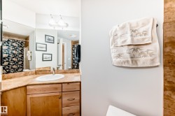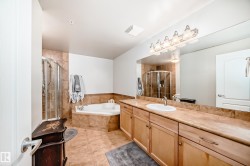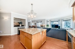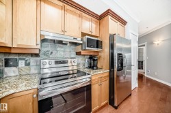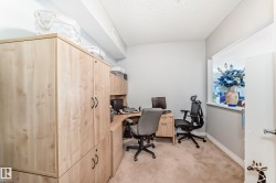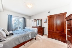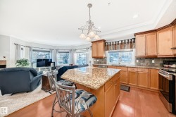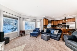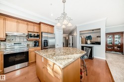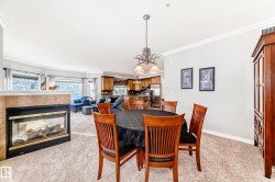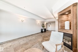 Step into refined urban living in this exceptional corner-unit condo located in the heart of downtown St. Albert. Offering 1594 sq ft of beautifully designed space, with huge windows that bring in natural light and feature remote-controlled blinds. The gourmet kitchen is a true showpiece, flowing effortlessly into a spacious dining area and an expansive living room & dining area highlighted by a stunning 3-sided fireplace. The primary is a private retreat with a walk-in closet, a luxurious ensuite, and large patio doors to private balcony. A generously sized 2nd BR offers comfort and flexibility, while the den provides the ideal space for a home office, or creative studio. A large laundry room with built-in cabinetry and a dedicated workspace adds everyday convenience. Features: A/C, 2 Titled UG parking stalls, Titled storage unit, river valley walking trails, St. Albert Farmers’ Market, shops and restaurants—this is more than a home, it’s a lifestyle upgrade with convenience and upscale appeal.