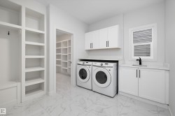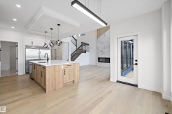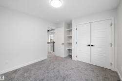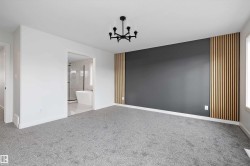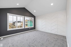 Location, Location! Welcome to this brand new WALKOUT BACKING ON TO THE POND, almost 2400 SQFT 2 storey New Castle 1B model by award winning Blackstone Homes in Chérot St. Albert. This home won the best home with BILD 2023. Upon entering, you will be welcomed by nice foyer leading to a much needed den, mudroom with built ins & walk through pantry leading to chef dream kitchen offering built in appliances with fridge/freezer combo & huge island. Dining area with wet bar. Great room offers 18 feet open to below ceiling with linear fireplace finished with wood/tile & 3D ceiling. The 2nd floor offers 3 good size bedrooms, 2 baths, bonus room. Master bedroom is huge with beautiful spa like ensuite offering double sinks, shower & freestanding tub, huge WIC. Other features -9' main/basement ceiling, MDF shelving, Maple railing, Black plumbing/Lighting fixtures, upgraded quartz, hardwood floors, Blinds, rear deck, New Home Warranty. Great location - Easy access to Ray Gibbons Dr, close to shopping & playground.