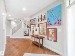 BRIGHT & SPACIOUS CUSTOM!! 2700 Sq.Ft. 5-bdrm, 3.5-bath 2 storey located in family friendly North Ridge. Spacious foyer welcomes you into this airy open modern home. Boasting main floor den, 9' ceilings, large open concept great room with cosy gas fireplace.The chef’s kitchen features quartz counters, stainless appliances, custom cabinetry, and a large island overlooking the great room and dining area.Patio door to south facing deck.Large mudroom with stylish storage cabinets, bench and 2 pc bath. Upstairs offers a spacious bonus room, flex area, dreamy primary retreat with spa-like ensuite and walk-in closet, 2 large bedrooms both with W/I closets, 5 pc main bath and laundry on upper floor.The fully developed lower level offers a large rec area, 2 bedrooms 3pc bath and heated flooring.Triple attached garage with lots of storage, bench and 2 drains.Fully fenced low maintenance south facing yard.Upgrades Hunter Douglas blinds upstairs 2023,Fireplace 2022 and R18 garage doors 2023.