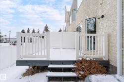 Welcome to this beautiful 5-level split townhouse in Lacombe Park, offering just under 1,550 sq. ft. of bright, functional living space. Step into a spacious living and formal dining area, then head down to the sunny south-facing kitchen with an island, breakfast seating, and access to the large low-maintenance deck. One level up, a large family room with a vaulted ceilings create the perfect place to unwind. The same level features a generous primary bedroom with a 4-piece ensuite, with jacuzzi tub, while the separate top floor offers two additional bedrooms and a full 4-piece bathroom. Recent upgrades include brand new top-of-the-line custom triple pane windows from GreenFox, central air conditioning, and HWT. The full basement provides excellent storage, and the double attached garage adds everyday convenience. Located close to parks, schools, transit, and shopping, this home delivers a rare blend of space, comfort, and value in a well-run complex.