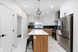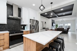 Welcome home! From the moment you enter, you’re greeted by a spacious foyer that opens into a bright great room and dining area with a beautiful coffered ceiling perfect for family meals and gatherings. The kitchen is designed for everyday living and entertaining, featuring full-height soft-close cabinetry, upgraded quartz countertops, and quality appliances. The main floor also includes a built-in bar with beverage cooler and a linear fireplace with a stylish feature wall, ideal for cozy nights in. Upstairs offers three large bedrooms, two full bathrooms, a bonus room for family movie nights or kids’ play space, and convenient upper-floor laundry. The generous primary bedroom features a lovely ensuite and a spacious walk-in closet. 9’ ceilings on both the main floor and basement and separate entrance. Fully landscaped with air conditioning and a double detached garage. Located in a fantastic family-friendly neighbourhood close to Ray Gibbons Drive, parks, amenities, and the incredible Paris Playground.