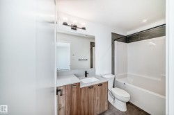NEW CONSTRUCTION – READY FOR IMMEDIATE POSSESSION! Discover modern living in this Courtyard E townhome located at Midtown in St. Albert. With over 1,400 sq. ft. of thoughtfully curated living spaces, this home offers 2 spacious bedrooms, 2.5 bathrooms, and a double car garage with convenient foyer access. Oversized windows flood the home with natural light, highlighting the 42” electric fireplace in the great room. The kitchen is designed with both function and style in mind, featuring quartz countertops and a built-in pantry cabinet, while upgraded vinyl tile flooring enhances the second floor, foyer, laundry room, and bathrooms. Year-round exterior care - snow removal and landscaping maintenance - is included. Images and renderings are representative of the home’s layout and/or design only and may include virtual staging. Exact finishes may differ. Sale price is inclusive of GST.