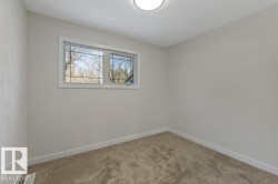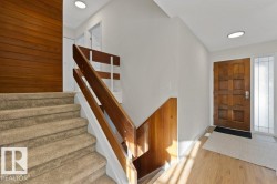 Welcome Home! This 1,227 sq ft, 4-level split is truly move-in ready. Tucked away on a quiet crescent & backing walking path, this 3 bed, 3 bath home is sure to check all the boxes. Natural light pours through the windows, creating a warm, inviting feel. The spacious living rm overlooks a tree-lined street & is anchored by a fun, funky W/B fireplace that adds charm & character. The bright kitchen offers updated counters & backsplash with patio doors leading to deck & SW-facing yard. Upstairs, you’ll find 3 generous bedrms, 4 pc bath, & 2-piece ensuite off primary. The 3rd level features a large rec room with wood accents that give it a cool mid-century vibe, plus a 2 pc bathrm with rough-in for a future shower. The 4th level has even more space, ideal as a playroom, gym, hobby or office—along with a massive storage rm, utility rm with laundry. Enjoy the huge fully fenced yard & 467 sq ft tandem garage. Upgrades: roof 2025, new paint, floors, bathrooms, lighting & more! Steps to trails, parks & lake!