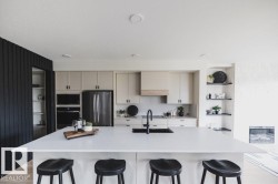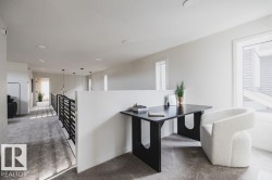 Welcome to the Entertain Vista 24 by Cantiro Homes! With 3 bedrooms and 2.5 bathrooms, this gorgeous home balances style & functionality. The main floor offers a bright foyer, a dining area open to above, and patio doors that extend your living space to the covered rear deck. A walkthrough pantry leads to a large kitchen with upgraded built in chefs appliance package, flowing seamlessly into the living room with oversized windows and a modern electric tile fireplace. Vertical metal railing adds a clean, contemporary touch throughout the main and upper floors. Upstairs, two open-to-below areas create an airy, light-filled atmosphere. A central bonus room and corner tech space provide flexible options for an office and play area. The primary bedroom includes a spacious ensuite with double vanities and a built-in makeup desk, leading into an expansive walk-in closet and conveniently connected laundry room. *photos are for representation only. Colours and finishing may vary*