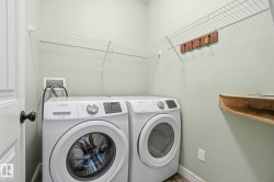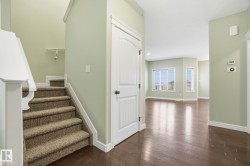 Feel at home the moment you walk in the door of this fully finished 2 storey in Stony Plain's Southcreek subdivision. NO REAR NEIGHBOURS! Large open floorplan with big living room with tons of natural light. Kitchen has a corner pantry and a nice island for people to congregate around. Dining area is perfect for hosting family and friends. MAIN FLOOR LAUNDRY! Head upstairs and you'll find a great bonus room; ideal for watching a movie! Large master suite with vaulted ceilings, a large walk in closet and 4pc ensuite. 2 more bedrooms are great for kids, guests or a home office. Basement is fully developed with a large rec room and another bathroom. Central A/C. Double attached garage keeps the snow off the vehicles! West facing backyard is fully landscaped and even has extra storage with a shed. Farm field behind gives you plenty of views. Quiet cul-de-sac with great neighbours!