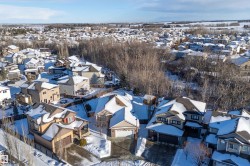 Set in the heart of Westerra, this beautifully maintained bungalow is surrounded by mature trees and lush greenery, offering a peaceful, private setting. The landscaped backyard feels like a retreat and features a charming cabin-style shed. Inside, the open-concept layout offers hardwood floors, custom quartz countertops, and cozy gas fireplaces. The chef’s kitchen includes a walk-in pantry and flows into the dining and living areas, ideal for entertaining. The main floor features two spacious bedrooms and a front office. The primary suite overlooks the backyard with door access to a private deck, a walk-in closet with custom California Closets, and a luxurious ensuite. The lower level offers family living space, two additional bedrooms, and a storage room that could serve as a fifth bedroom. Recent upgrades include new central A/C, heated garage, and a recently poured front sidewalk. An exceptional home in a sought-after location. Don't miss this opportunity!