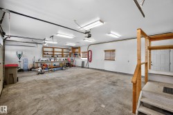 This 1,810 sq ft bungalow in Country Plains Estates combines luxury living with unbeatable functionality. Set on a 0.4 acre lot, the home offers hardwood floors, vaulted ceilings, and a stone feature fireplace. The kitchen is designed for everyday living with granite counters, stainless appliances, corner pantry, and bright dining area. Three bedrooms upstairs include a spacious primary suite with walk-in closet and 5-pc ensuite. The finished basement is built for entertaining with a huge rec room, wet bar, 2 more bedrooms, and full bath. Car enthusiasts and hobbyists will love the oversized triple garage plus a brand new 1,100+ sq ft detached shop (38’5” x 28’). Outdoor living shines with a covered deck, gas BBQ hookup, RV parking, and landscaped yard. Extras include aggregate driveway, underground sprinklers, and newer shingles—truly a rare property offering space, style, and a dream shop in town!