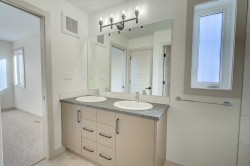 IMMEDIATE POSSESSION AVAILABLE! Brand new 3 bedroom 3 bathroom 2 story home with large attached garage, backing onto a future green space/walking trail. This home is located in popular Iron Gate subdivision in close walking proximity to all amenities! As you enter the home you will be greeted by a good size foyer with closet. The main floor has an open kitchen/dining/ living room design. The kitchen comes complete with stainless steel stove/fridge/dishwasher/microwave, large centre island, quartz counter tops, and pantry. Just off the dining room you'll find a sunny south facing 11.5x10 ft. deck. The main floor also has a 2 piece bathroom conveniently locate near the garage door entry/front entry. Main floor area is finished in luxury vinyl plank flooring. Upstairs you'll find 3 bedrooms, including a large Primary bedroom complete with a 5 piece ensuite with tub/shower and his/hers sinks and a large walk in closet. Convenient upper floor laundry complete with washer/dryer and a 4 piece main bathroom complete this floor. Upper floor is finished with carpet flooring, bathrooms finished with luxury vinyl plank. Other great features include front landscaping, paved rear alley, roughed in central vac, roughed in under slab heat in basement, 10 year new home warranty. Need a 4th bedroom? Seller will fully develop basement with an additional bedroom, family room and 4 piece bathroom for $36380 plus GST.