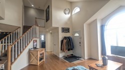 Family home in River view Estates! total of 4 bedroom and 3 bathrooms including a Jack and Jill ensuite off the primary bedroom. Main floor is an open concept floor plan with front living room, big kitchen and second living room facing the yard with a natural gas fireplace. Basement is fully finished with a HUGE rec area, BIG bedroom, 3 piece bathroom and storage room. Yard is fully fenced with mature trees and deck. Backing onto field with walking trails to pond, outdoor rink, playground, school and golf course.