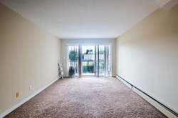Well maintained and affordable retirement condo, 55+ age restriction. Refinished kitchen cabinets, new countertops, sink and taps as well as flooring, bathroom tub and surround and light fixtures have all been upgraded. Clean and well cared for, this is a delightful unit, set in a convenient location close to shopping. The hot and cold water lines have all been replaced in the entire building. Low strata fees include heat, water and hot water. This complex is well managed and has large storage unit, workshop, games room and meeting room. Roof and boiler have been recently replaced.