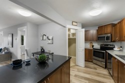 Versatile 2BR 2BTH Abbotsford West Condo. This ground-level home is situated on the complex's quiet side w/ an outdoor patio backing onto greenery. Modern laminate flooring seamlessly lines the grand room while the kitchen boasts rich cabinetry, stainless steel appliances & ample counter space (bonus: walk-in closet for extra storage & pantry space). Bedrooms are on opposite sides of the home to ensure maximum privacy, w/ the tranquil primary featuring a full ensuite & walk-through closet. A second full bathroom lessens morning lineups, & oversized windows welcome plenty of natural light. Centrally located w/ 1 secure parking spot & easy access to Highway 1, the home is a short walk/drive to Superstore, Sevenoaks Shopping Centre, various shopping & dining, & Mill Lake Park.