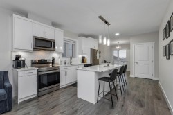 TOWNHOUSES IN MOST DESIRED NEIGHBOURHOOD Welcome to Rockhill Properties! This executive 3 bed, 3 bath townhouse offers over 1,600 sq ft of open-concept living with stunning mountain or city views. Main floor features chef’s kitchen with large island, quartz counters, S/S appliances and patio access with 2 piece bathroom. Upper level includes 3 spacious bedrooms, primary with ensuite & walk-in closet, plus front-load laundry. Double car garage, security rough-in. Walking distance to all to: Harry Sayers Elementary, Reimer Middle School, Rick Hansen Secondary, Summit Ice and fitness center, Gurdwara, and parks.