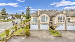 Exclusive Ponderosa Heights. End unit townhome with home-like square footage boasting 2,200+ Sq.Ft. 3 beds. 3 full bathrooms and a 21'x23' double car garage with a bonus 2 spots out in front of garage for extra vehicles and visitor parking is available too. Main floor has a huge kitchen with a private patio facing the back, wall oven, gas stove & large island. Living room is open with a vaulted ceiling, gas fireplace & enjoy sunset views of Mt. Baker & the Airport from the living room sundeck. Bsmt is fully finished offering 1 bedroom, 1 full bathroom and a huge family/rec room. Built in vacuum, new blinds, new paint in 2021, new laminate flooring all throughout. No age restrictions, cats and dogs allowed. Contact now to schedule a private viewing.