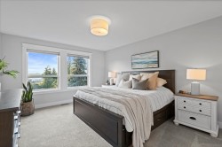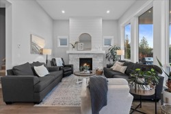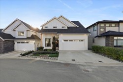 WELCOME HOME! This stunning Grey Properties luxury home was custom designed for this lot and its owners, with exceptional quality, finishes & features. The spacious open floor plan includes a gourmet kitchen with walk-in pantry, vaulted great room with floor-to-ceiling fireplace, and a covered patio with Phantom sunscreen—perfect for enjoying beautiful views and sunsets. Upstairs are three generous bedrooms including large primary with spa-like ensuite. The fully finished basement offers a separate entry, rough-in for a bar or kitchen, plus a bedroom and full bath. Located in the desirable gated community of Sunset Ridge, you’re in the heart of East Abbotsford, walking distance to all levels of schools. Fully fenced low-maintenance yard w/ artificial turf & hot tub. Come fall in love!!