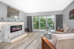 Welcome to Dogwood Manor! This southeast corner 1,300+ sqft unit features three large bedrooms, two full bathrooms, fully renovated not a thing to do! Gorgeous fireplace and a huge private wraparound patio with glass railing. The well run 55+ building has been fully refurbished with new siding and updated common area carpeting. The unit offers marble tile floors, under-cabinet lighting, ample storage, and plenty of parking. Enjoy great amenities, including a fully equipped gym and games room, all in a central location close to shopping and highway access.
