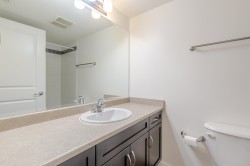 The Element. Offering immediate possession and refined condo living. Beautifully maintained 2 bedroom, 2 bathroom residence features a desirable layout with separate bedrooms, each with full bathroom access, making it ideal for roommates or added privacy. Home includes 2 secure underground parking stalls and a private storage locker. Recently refreshed with new paint and newer appliances including fridge, dishwasher, washer, and dryer. Thoughtfully designed floor plan offers a separate laundry room with storage. Enjoy cool summer living with an east-facing exposure and relax year-round on the spacious covered deck. Pet-friendly, professionally managed building with a live-in onsite caretaker. Ideally located near UFV, the hospital, and freeway access, with ample visitor and street parking.