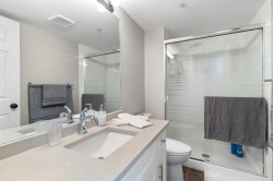 Welcome to this bright and spacious 2-bedroom, 2-bathroom condo in the heart of Abbotsford! Boasting 1,040 sqft of comfortable living space, this well-maintained unit offers a large open-concept living and dining area with plenty of natural light. Featuring an updated kitchen with quartz counters, ample storage, and a functional layout that flows seamlessly into the living space. Both bedrooms are generously sized, with the primary suite offering a private ensuite bathroom. The second bedroom is ideal for guests or a as a home office. This well maintained building offers an indoor pool, hot tub, gym, large games room with kitchen, pool table, shuffle board, tv, seating area, 2 guest suites, storage locker, open air courtyard, and a great community. Book your showing today!