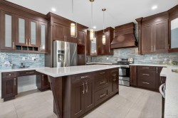 Welcome to Merlot Boulevard in Aberdeen! This beautiful home offers a functional layout for the whole family. The main floor features an open-concept design with a bright living room, cozy family room with fireplace, spacious dining area, and modern kitchen. A den is perfect for a home office or playroom. Upstairs has 4 large bedrooms, including a primary suite with walk-in closet and spa-like ensuite. The basement includes a media room plus a 2-bedroom unauthorized suite - ideal mortgage helper. Enjoy a private backyard, double garage, and ample parking. Close to parks, High Street, and quick access to Highway 1!