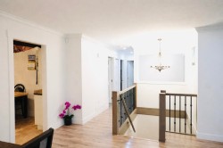 Beautifully renovated inside and out, this meticulously maintained 2,355 sq ft home showcases sleek, modern finishes throughout. Offering 5 bedrooms, 3 full baths, and 2 kitchens, the layout is bright, functional, and ideal for growing or multi-generational families. The main level features spacious living and dining areas plus a private patio. Downstairs includes 2 bedrooms, a large kitchen, and a separate entrance. Set on a just-under 6,500 sq ft lot with a fully fenced backyard and a 14 ft privacy hedge, plus ample parking. Quiet street close to parks, schools, Highstreet, shopping, recreation, places of worship, and Highway 1 access.