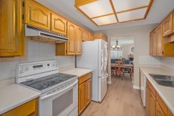 Amazing location! Walking distance to major shopping, Mill Lake Park and other amenities. This unit has had many recent upgrades including gas fireplace and most flooring. Two large bedrooms with primary bedroom featuring a walk-in closet and deluxe custom sit-down shower. Separate living room and family areas plus full dining room. Outdoor patio offers space for the BBQ. Enclosed single car garage. Complex offers a cozy clubhouse, great for hosting family gatherings. A wonderful place to call "Home". Age restricted 55+ and one cat allowed. Sorry, NO dogs.Quick possession possible.