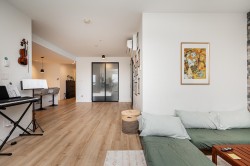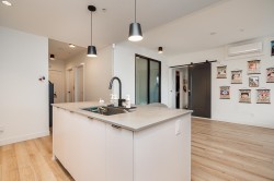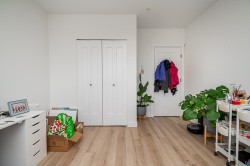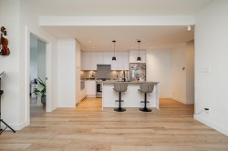 Welcome to Upper Montrose! This coveted 3-bed+Den, 2-bath, 1,247 SF unit features a large deck, soaring 9' ceilings, and a stylish brick feature wall. The chef-inspired kitchen boasts quartz counters, a spacious island, stainless steel appliances, under-cabinet lighting, and a gas cooktop. Enjoy year-round comfort with built-in A/C. The primary bedroom offers a spa-like ensuite with dual sinks and a glass walk-in shower. Building perks include a boardroom with workstations, a courtyard with a playground, and a shared garden. Located in historic downtown Abbotsford, you’re steps from trendy shops, restaurants, breweries, and the farmers market. Includes 2 parking and is pet-friendly (2 pets allowed with restriction).