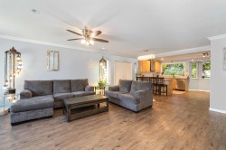 Welcome to Paradise. A Beautifully Renovated Gem in a Prime Location. Nestled in a quiet, family-friendly neighborhood, this home is a rare blend of modern upgrades, natural beauty, and practical living. With over $150K in upgrades! Features include updated exterior with stonework and cedar trim, new windows, new front door, 2022 furnace/HW tank, and central A/C. Enjoy a large covered patio with 6-person hot tub, surrounded by private greenspace and mature landscaping with fruit bushes, perennials, and a Japanese maple. Inside offers open concept living, entertainer’s kitchen with gas stove, granite island, vinyl plank flooring, updated baths, in-law suite with full kitchen/laundry, and tons of storage. RV parking, raised garden beds, shed, and no-fee 360 security. 5 mins to HWY & Shops!
